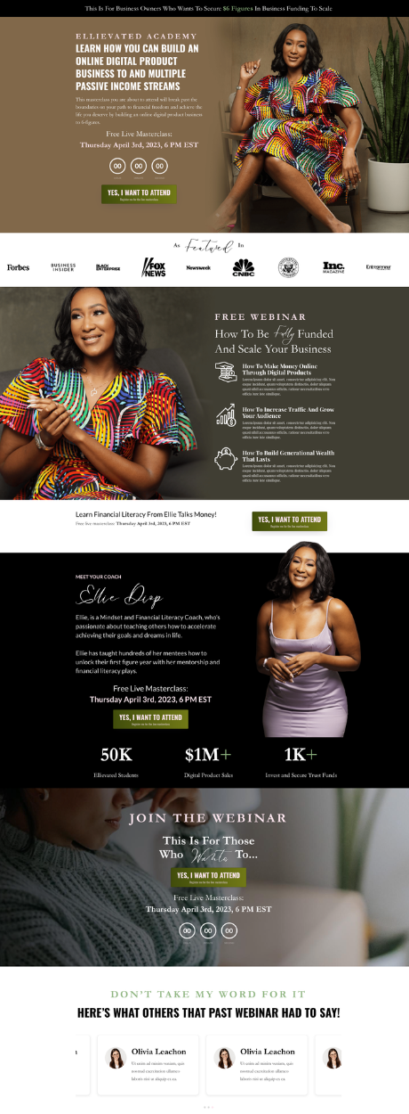 - Photography: We require 3 hi-res photos/headshots to use in the funnel.
