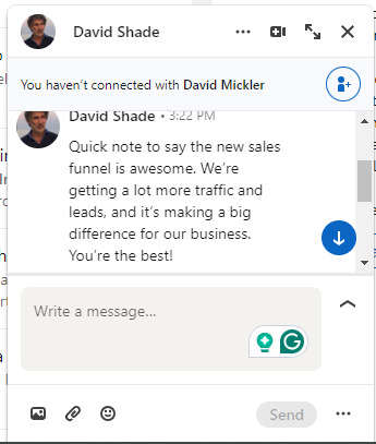 Prices for a done-for-you funnel build start at $300, although project rates depend on what you need (i.e. the amount of funnel steps, length of page, etc.).